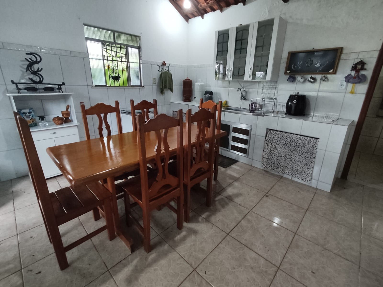 Gramado na frente da casa Varanda na frente da casa Área gourmet com churrasqueira Chuveirão na área externa e 2 banheiras retrô 2 cômodos fechados para guardar ferramentas Poço semi artesiano com bomba Água de mina com 3 caixas d’água.